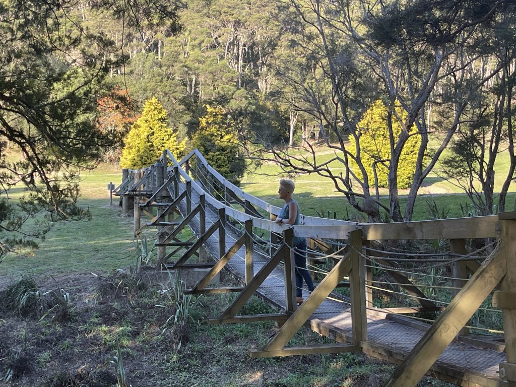When I was a kid growing up at the YMCA Camp, we had a classic swing bridge. It was made of wooden planks and metal cables, and while it only spanned a small creek, for most kids, crossing it felt terrifying. They’d slowly step on and creep over it, clinging to the sides, eyes fixed on the shaky planks beneath their feet. But for us, the camp kids who lived there, we didn’t just walk or run across it – we fearlessly rode our bikes over it!